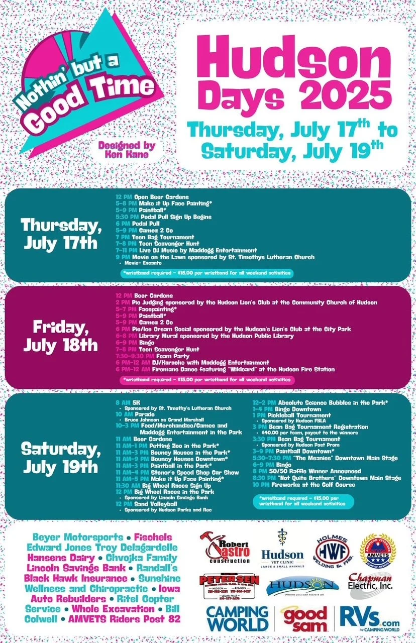 Below is the schedule for Hudson Days 2023. See more details on Facebook.